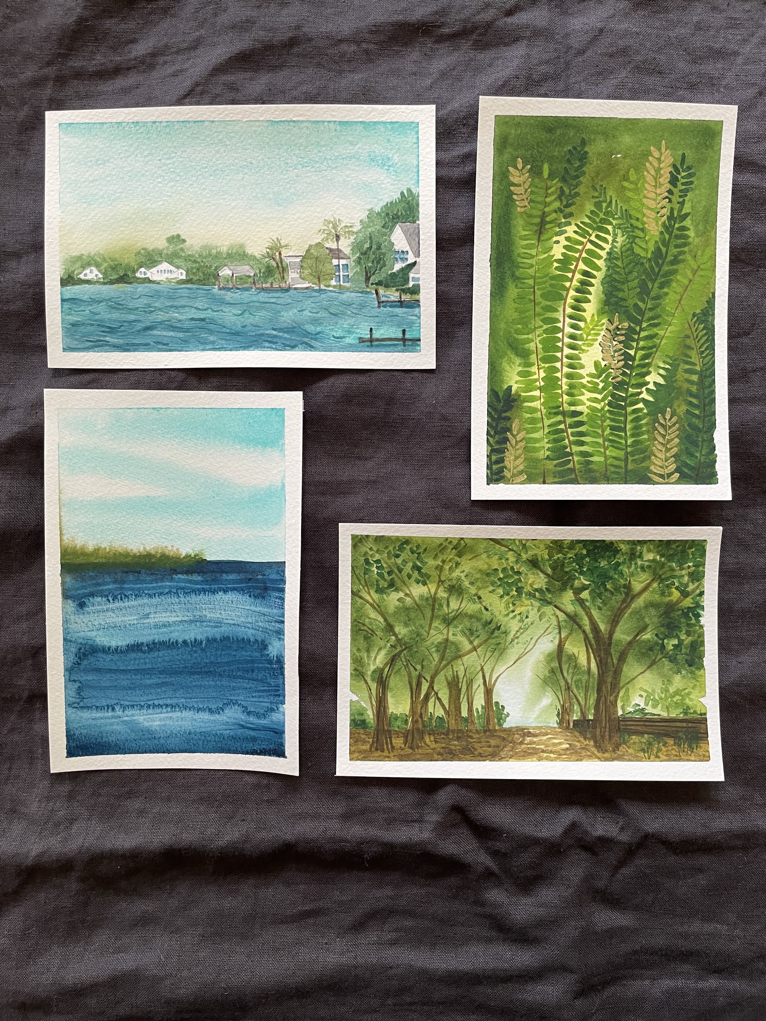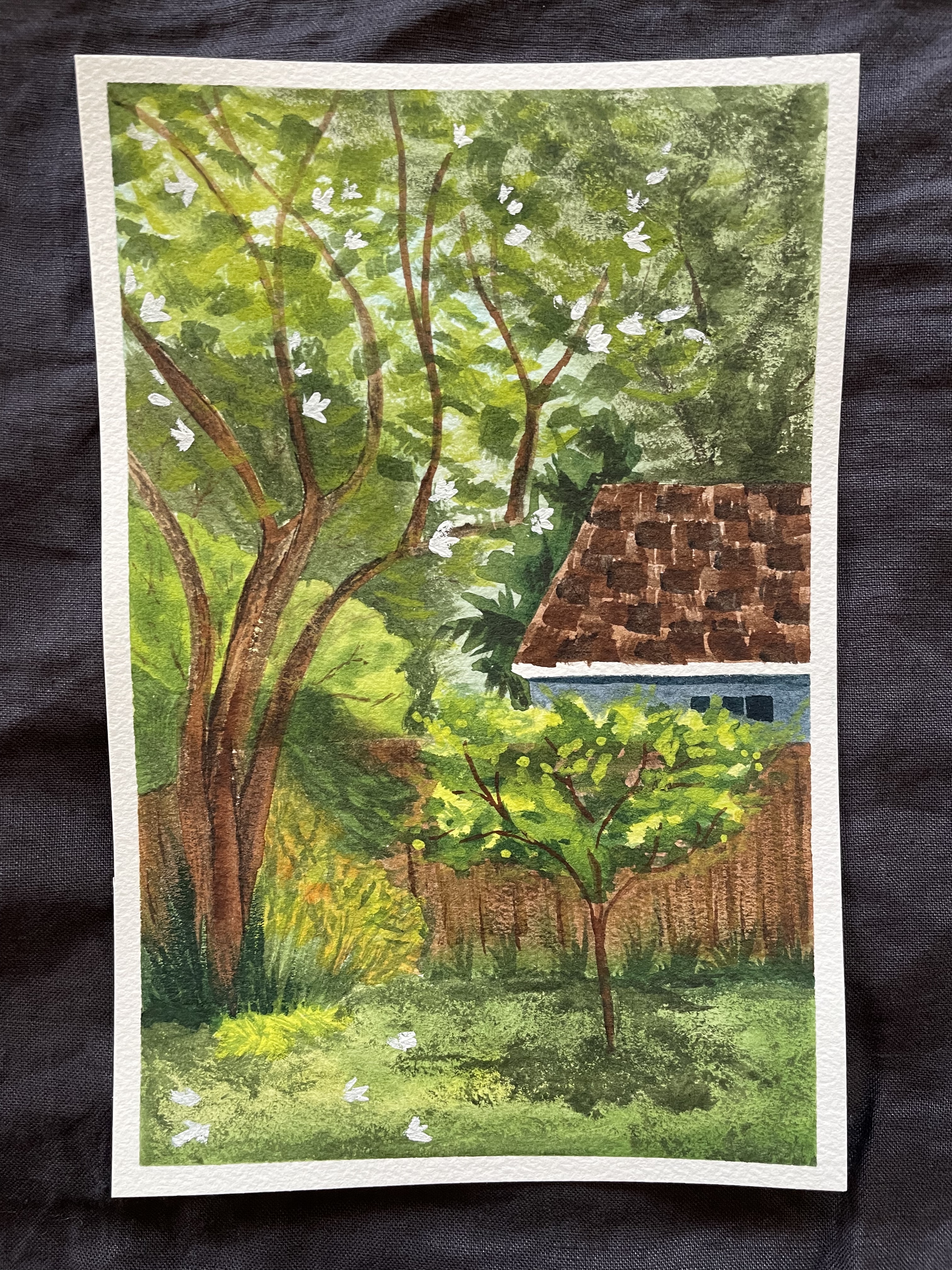 I can’t believe that I was able to paint outside almost every day in January! Here are my favorites from this month. I ended up with pictures of my backyard (the orchid tree is blooming!), a nearby lake, Lettuce Lake park (my favorite spot this month!), and just one interior that I did on a rainy day.