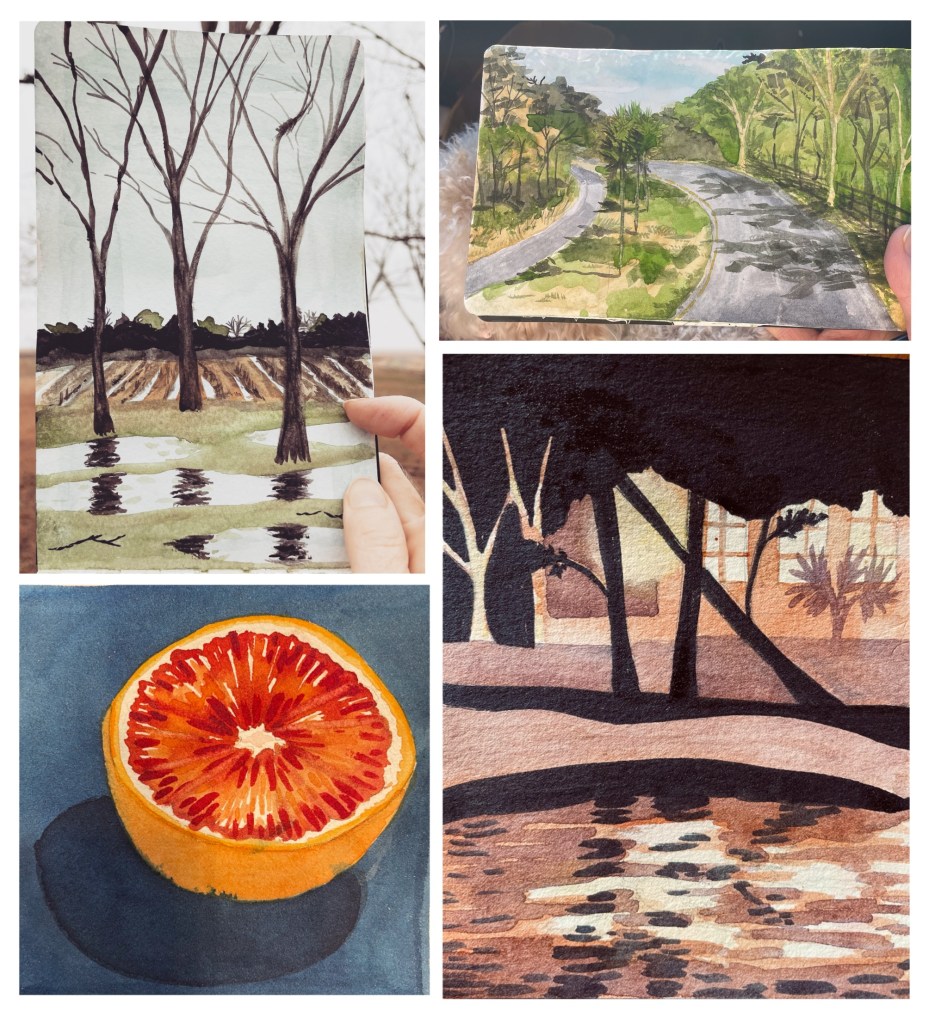 Last year in January, I was able to paint outside every day, and I really enjoyed it. I’ve set the same challenge for myself this year, to paint ouside every day! Assorted sizes, limited color palette (hansa yellow light, phthalo blue, and alizarin crimson– though I’ve already reached for my burnt sienna and sap green quite a bit!), and focus on light and shadow as much as I can. I’ll be posting regular updates here for every painting, and sharing a few on Instagram as well.
